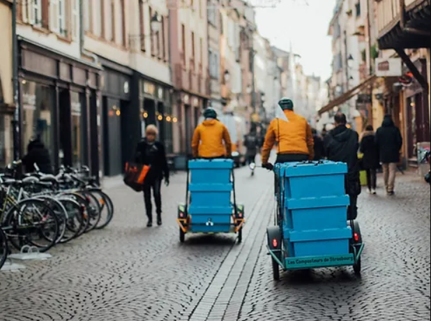 Sikle collecte à vélo et transforme en compost les biodéchets des restaurateurs et hôteliers de la ville de Strasbourg.